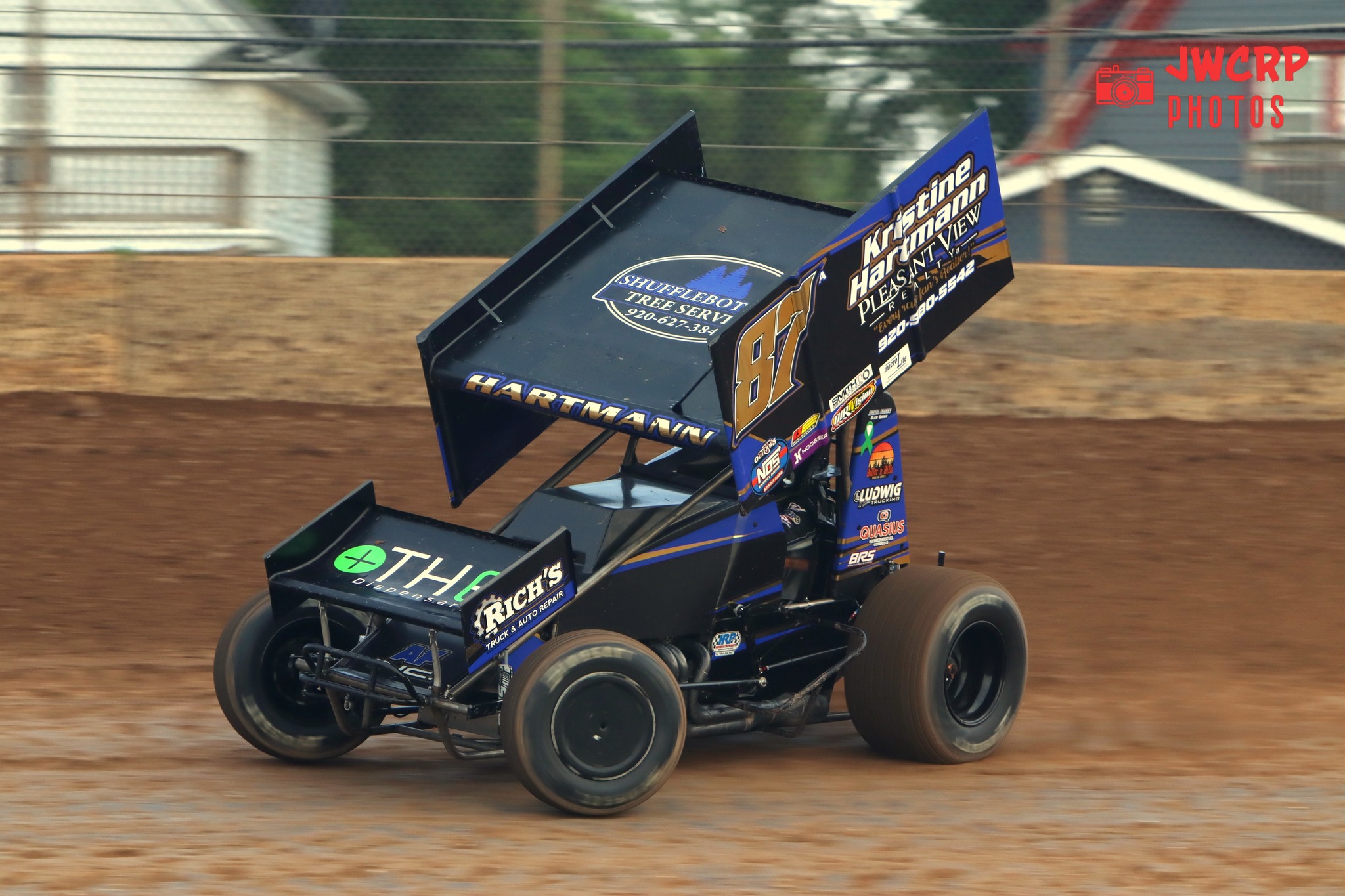The weekend closed out on Sunday, July 27, at Angell Park Speedway in Sun Prairie, Wis., where Hartmann qualified 13th out of 31 cars before placing fifth in the first heat race and coming home 17th in the 30-lap main event.