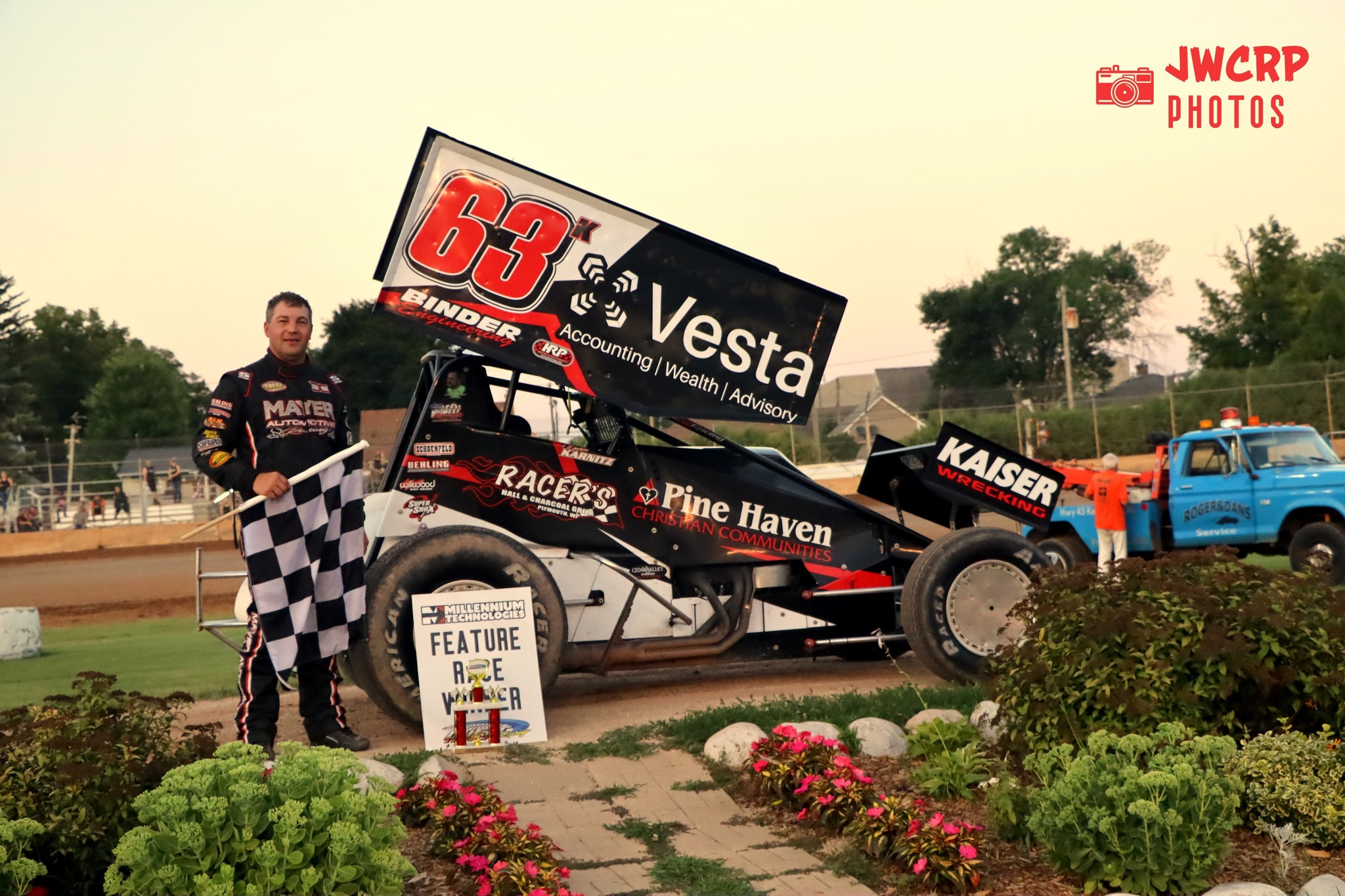 Lubach, who owns the most career A-main victories in the history of the PDTR Grand National division, finished a close second in a guest driving role, Minster placed third, eighth starter Derek Kaat of Plymouth placed fourth and Will Schumacher of charged up from the 17th starting position to round out the top five.