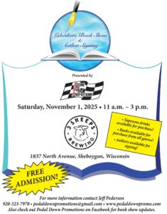 The fourth annual Lakeshore Book Show and Author Signing Presented by Pedal Down Promotions will take place on Saturday, Nov. 1, 2025 at 3 Sheeps Brewing in Sheboygan, Wis. – Pedal Down Promotions photo