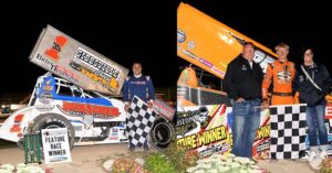 “I saw some lapped cars running really fast down low in turns three and four,” Julien said. “When I saw that, I knew there was rubber on the bottom. I was able to roll the top in one and two, and then the bottom in three and four to track down Max [Guilford]. It’s crazy to get back-to-back wins like this. To get my first 410 win last week [at LaSalle Speedway in LaSalle, Ill.] was amazing, and now to get another one this week is unbelievable.”