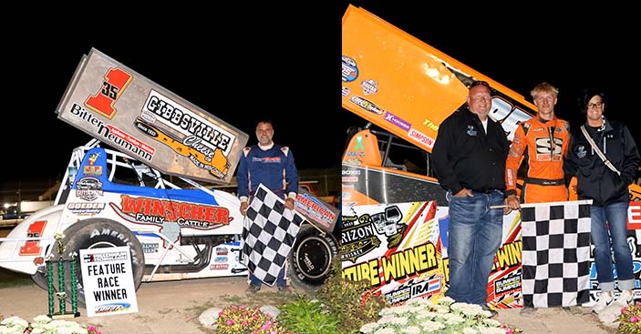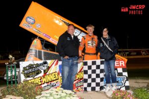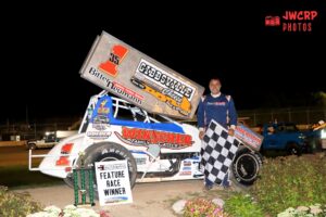 Logan Julien of Oconomowoc collected his second career Bumper to Bumper Interstate Racing Association 410 Sprint Car main event win at The Plymouth Dirt Track in Plymouth, Wis. on Friday, August 29.  – JW’s Car and Raccing Photos